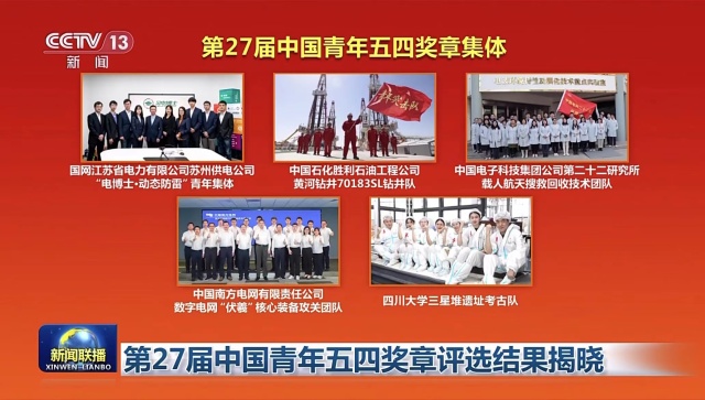 央视新闻联播报道第27届中国青年五四奖章评选结果。