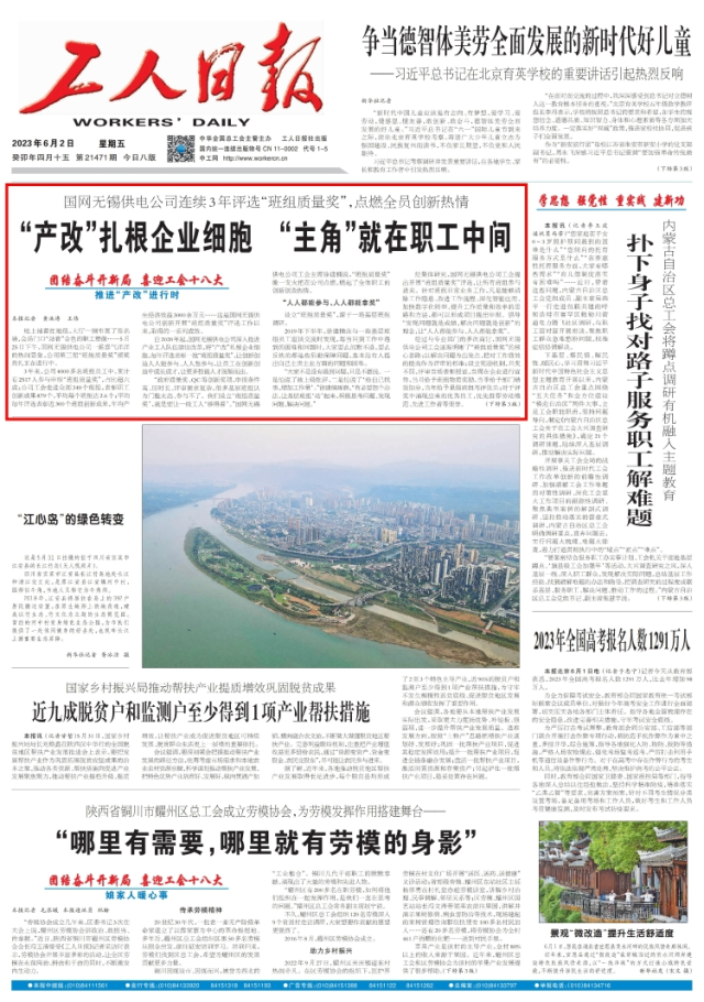 《工人日报》头版头条刊登:“产改”扎根企业细胞 “主角就在职工中间”
