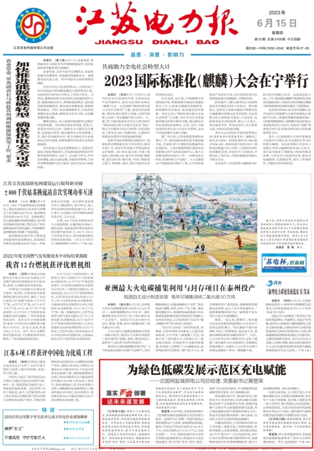 江苏电力报:为绿色低碳发展示范区充电赋能