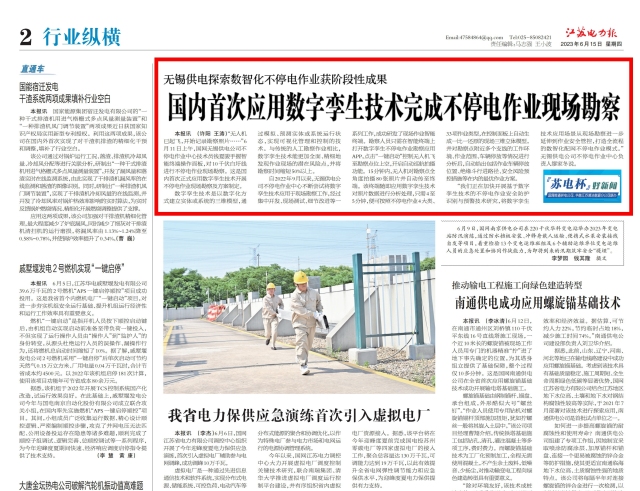 《江苏电力报》:无锡供电探索数智化不停电作业获阶段性成果 国内首次应用数字孪生技术完成不停电作业现场勘察