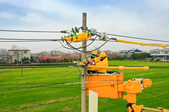 2022年12月30日,新沂市公司作业人员在10千伏时街线开展不停电消缺工作,对该线路4处脱落瓷瓶的导线进行绑扎,保障线路安全靠供电。(韦强强 杨洋)