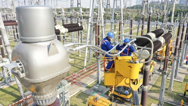 1月18日,省送变电公司工作人员正对苏州500千伏车坊变电站设备进行停电检修。(史俊)
