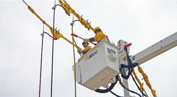 2月8日,宿迁泗阳公司在10千伏来英线29号杆带负荷更换柱上老旧开关,避免线路跳闸,保障可靠供电。(胡晓 陶冰峰)