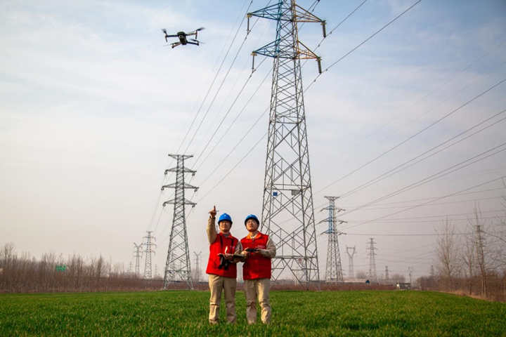 3月8日,徐州新沂公司输电运检工作人员来到110千伏姚王线2号铁塔处,利用无人机对导线、塔身、金具和绝缘子等进行检查,为春耕用电保驾护航。(韦强强)