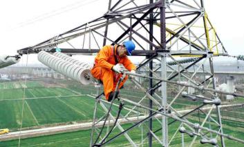 3月21日,连云港灌南公司工作人员在220千伏邓金线55号塔上,对金具与导线连接处的螺栓进行紧固作业,保障线路设备安全运行。(王冉)