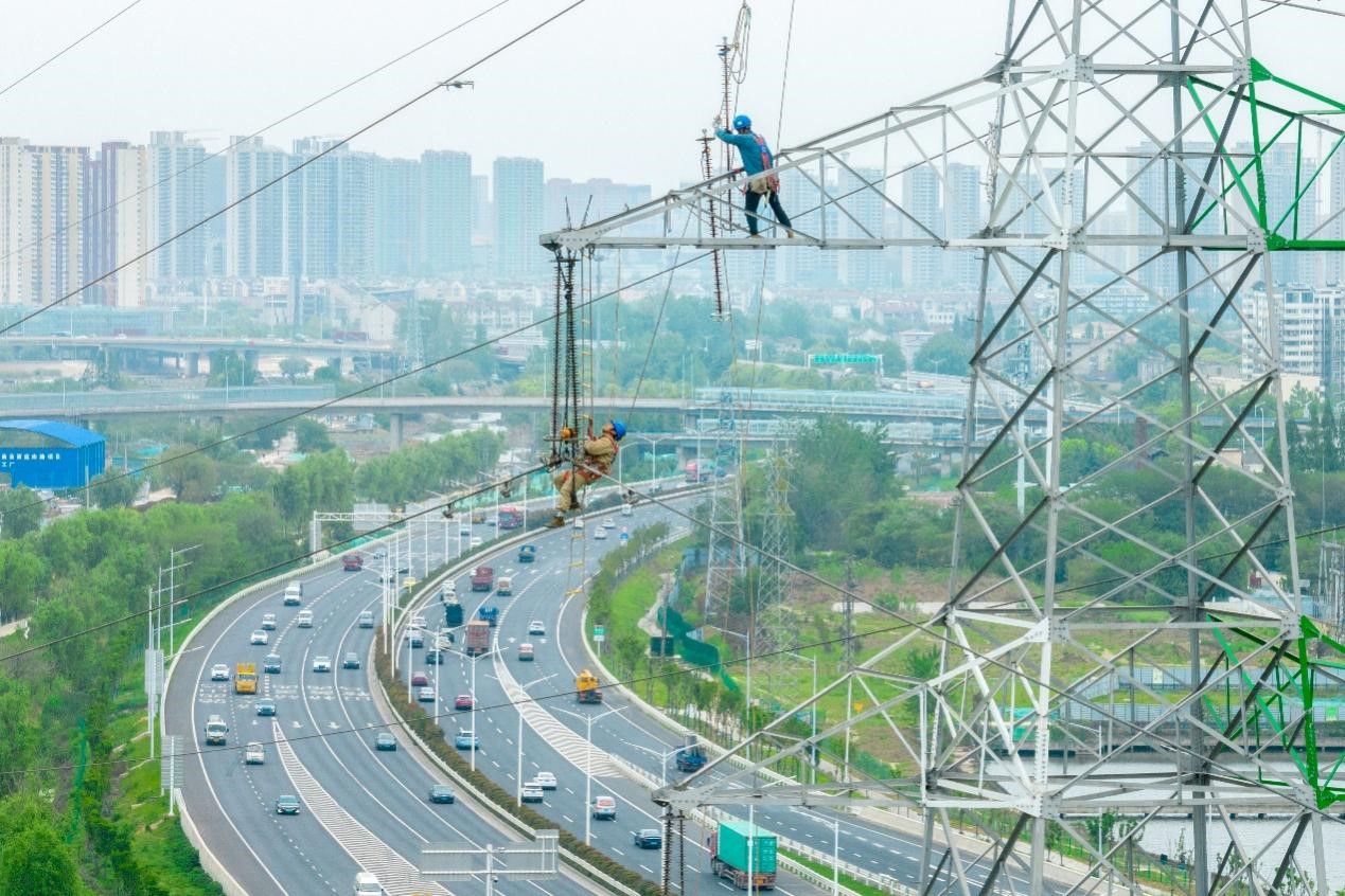 4月21日,南京公司输电运维人员对220千伏秦滨线开展综合检修。图为作业人员正在更换老旧绝缘子。(杜懿 黄昭)
