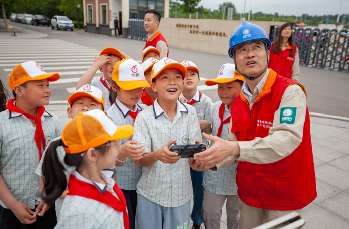 6月6日,徐州新沂公司在新沂市新安小学举办安全用电进校园活动,通过知识讲解、互动游戏、动手实验等方式,教育引导学生养成安全用电习惯、自觉保护电力设施。图为在志愿者指导下,新安小学学生正操控无人机查看输电线路分布情况。(韦强强)