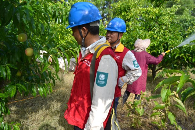 多年来,夏集供电所共产党员服务队用心服务、用情守护,为果园场“旅游+采摘”产业融合发展提供了坚强的电力支撑和优质服务。每年3月,该所党员服务队队员走进千亩桃园,帮助果园场果农巡查用电线路设备运行情况,发现隐患及时帮助消缺到位,确保广大果农春季种植安全可靠供用电。党员服务队队员还对涉及果园场用电的配电变压器、配电箱、供电线路进行全面巡视检查,对果园场灌溉泵站、小型抽水泵进行例行检查,发现问题及时帮助处理,为果农春灌生产保电护航。同时,党员服务队队员还向果农发放安全用电宣传手册,宣传安全用电、电力设施保护等知识,提高果农安全用电意识。