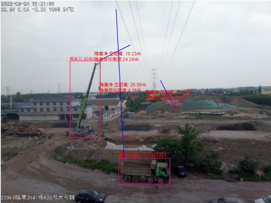 输电线路点多、线长、面广,杆塔上大量部署单目可视化监拍装置,对线路通道进行远程监控。前端图像监拍设备+云端图像智能识别算法,对拍摄的图像中的施工车辆、机械、山火等隐患物进行识别,系统可定性的识别施工车辆等外破隐患,却无法感知外破隐患的大小和位置,无法实时计算其对导线净空距离,无法进行精准预警,案例提出了结合点云数据三维空间信息和二维图像信息,进行二维—三维映射的方法,实现测量功能,实现全天候、全天时的远程监测。
