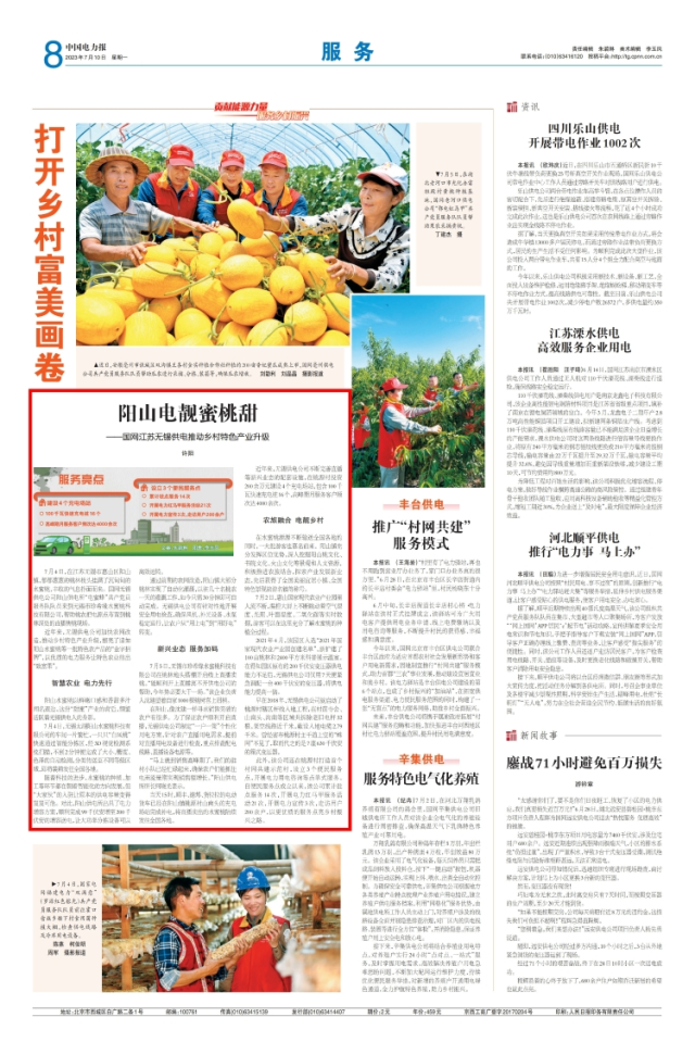 《中国电力报》:阳山电靓蜜桃甜——国网江苏无锡供电推动乡村特色产业升级