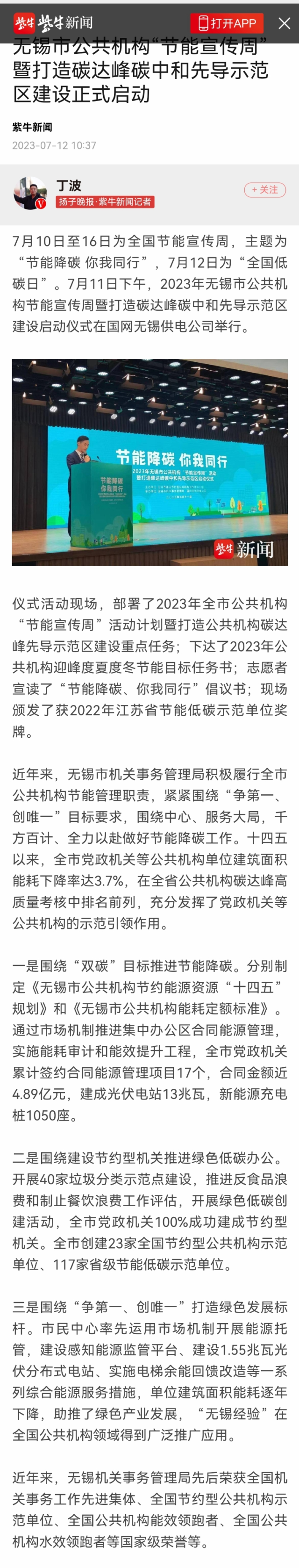 《紫牛新闻》:无锡市公共机构“节能宣传周”暨打造碳达峰碳中和先导示范区建设正式启动-东台报业网