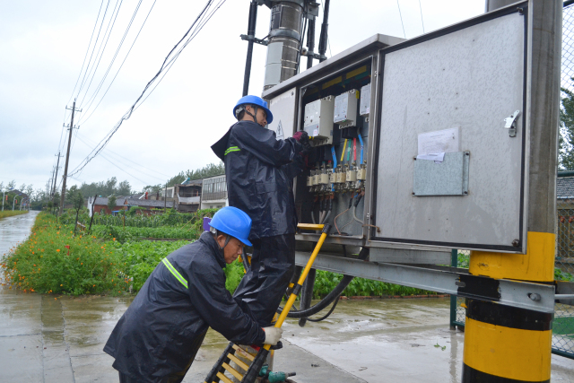 扬州宝应公司:冒雨处理用电故障恢复蟹塘增氧