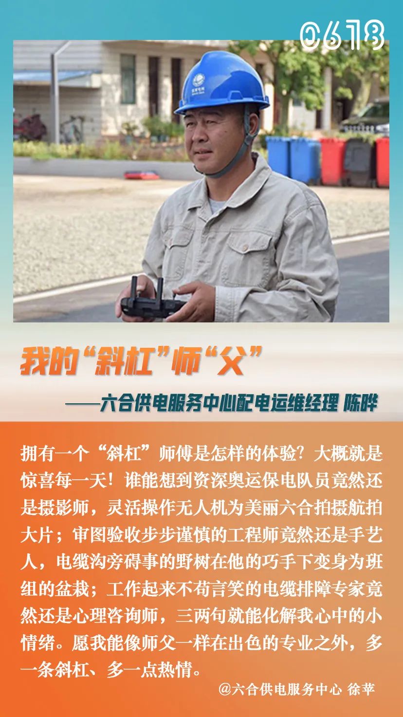 “许多年前你有一双清澈的双眼奔跑起来像是一道春天的闪电”时光不语,岁月如金电网企业因工作性质特殊电力人以男性居多随着电力事业一起成长这些建设者、见证者从“青涩”转变成“成熟”从“小徒弟”变成了“大师父”………“该怎么去形容你最贴切拿什么跟你作比较才算特别”昨天是父亲节正所谓一日为