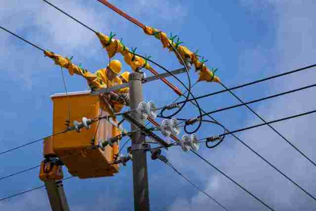 7月11日,南通通州公司工作人员通过带电作业方式在10千伏新坝线5259114号杆处,将该线路的老旧裸导线更换为绝缘导线,提高线路绝缘防护等级。(陈磊 吕右文)