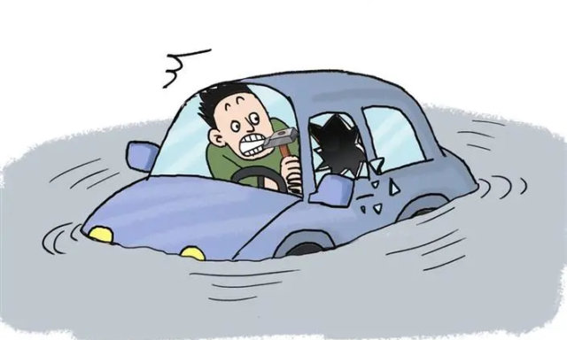 如果我们在驾驶汽车通过积水路面时造成发动机熄火,而且外部水压特别大,导致无法开门的情况时,首先要保持冷静,先将安全带松开,因为水漫进车里时,安全带是比较难打开的;然后用安全锤将玻璃击碎逃生,没有安全锤也不要紧,将副驾驶头枕拿下来,利用金属末端撬或击碎车窗。