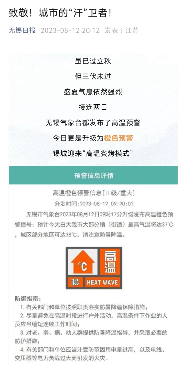 《无锡日报》:致敬!城市的“汗”卫者!