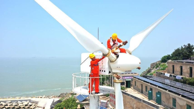 7月11日,国网连云港供电公司灌云开山岛共产党员服务队队员对开山岛智能微电网发电机组进行全面“体检”,保障海岛用电可靠。(任义刚)