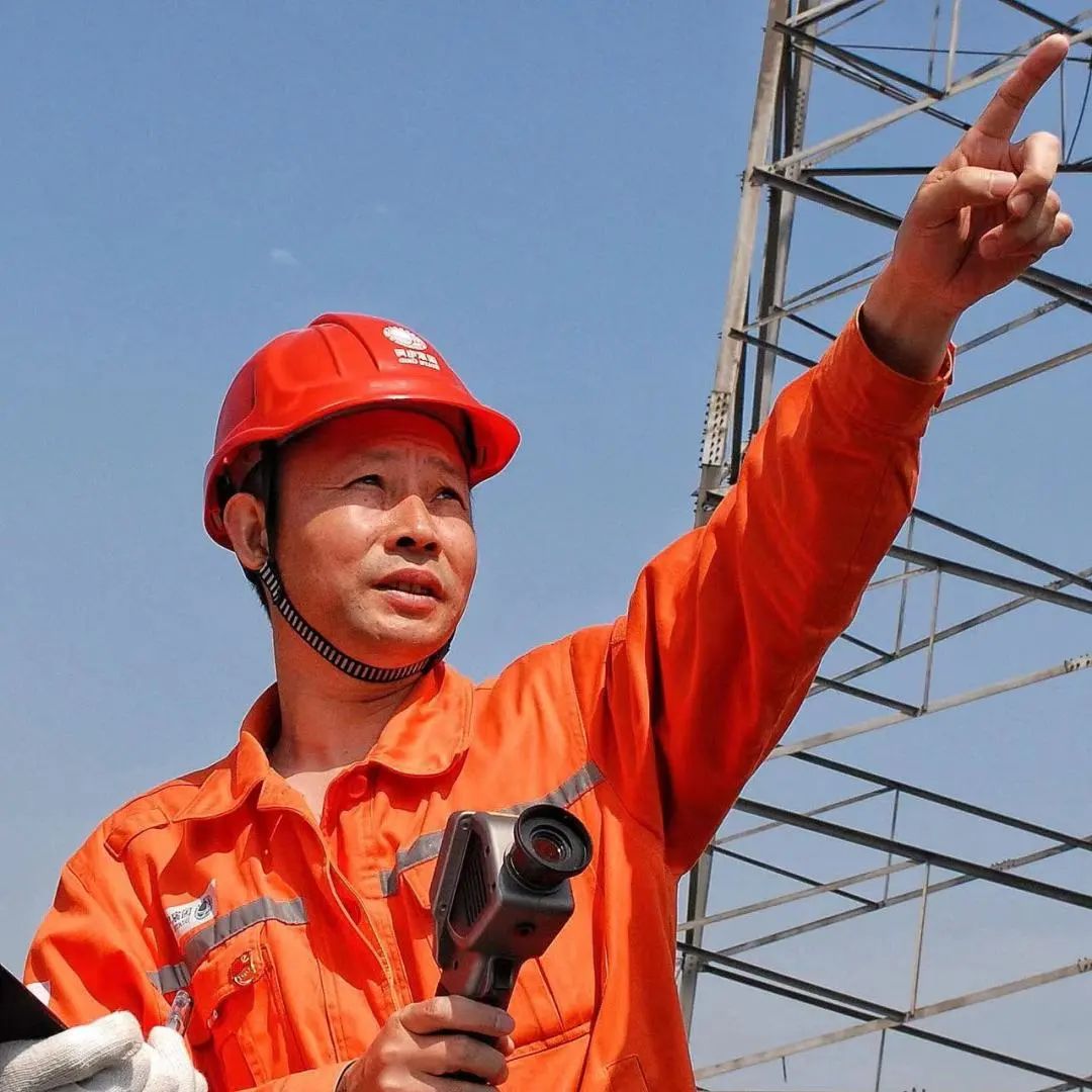 石城供电抢修队员,烈日下的他正专注于利用红外热成像仪对主供电源线路进行参数校对,他的双颊被火辣的太阳晒成了橙色,他指着线路:“参数没问题,是它,就是它!”