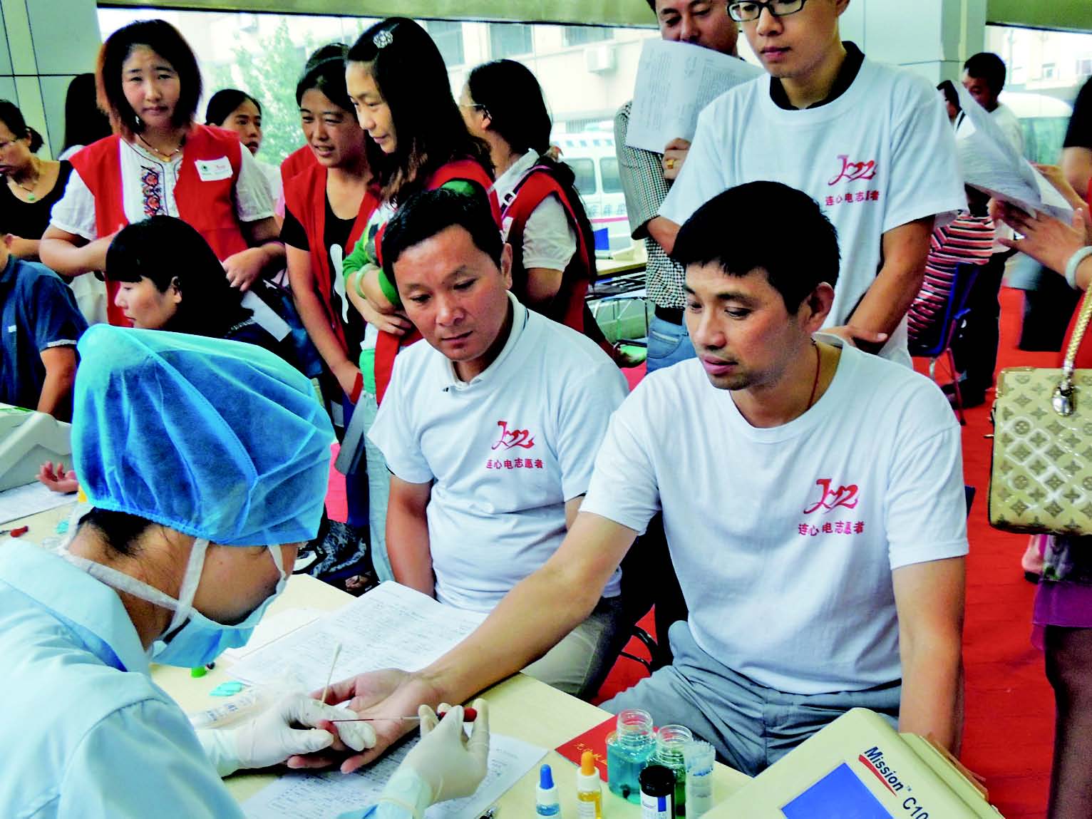 唐飞庭(右一)参加无偿献血