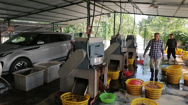 “现在好了,芡实从种植到加工全部实现全电化生产,灌溉有电动抽水泵,电费成本低、无污染;芡实去皮脱壳机械化,一名工人一天能生产20斤鸡头米,产量上去了,不仅人工成本低,且产品品相好。还有,我们现在基本在田头就有自已的冷藏库,既方便又省钱。”王春海说,“实施全电化改造后,种植成本下降了,产品品质也得到了客户认可,现在每亩产值6000元以上,比以前每亩多赚500元左右。”