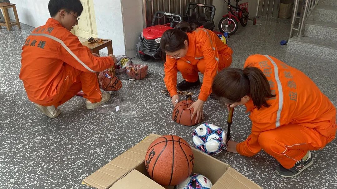 服务队书记赵艳将体育用品
