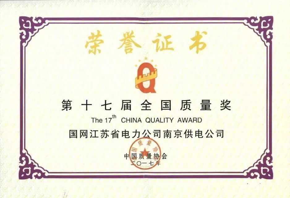 国网南京供电公司荣获第十七届“全国质量奖”