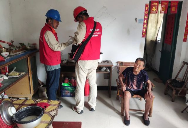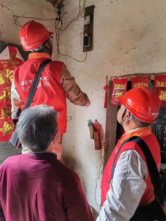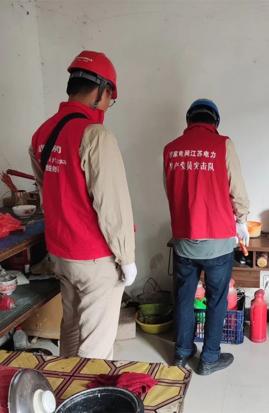 在兴化市兴东镇海河村,共产党员服务队队员们走进“五保户”宋大爷家中,仔细检查进户线是否存在破损漏电、电表进出线是否存在松动,室内线路是否老化、漏电,同时义务帮助更换电灯,处理开关、插座松动问题。