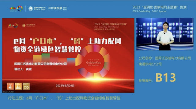 近日,由国家电网有限公司与《可持续发展经济导刊》联合发起的“金钥匙·国家电网主题赛”开展路演评审,国网南通供电公司项目《e网“户口本”,“码”上助力配网物资全链绿色智慧管控》获得银奖。