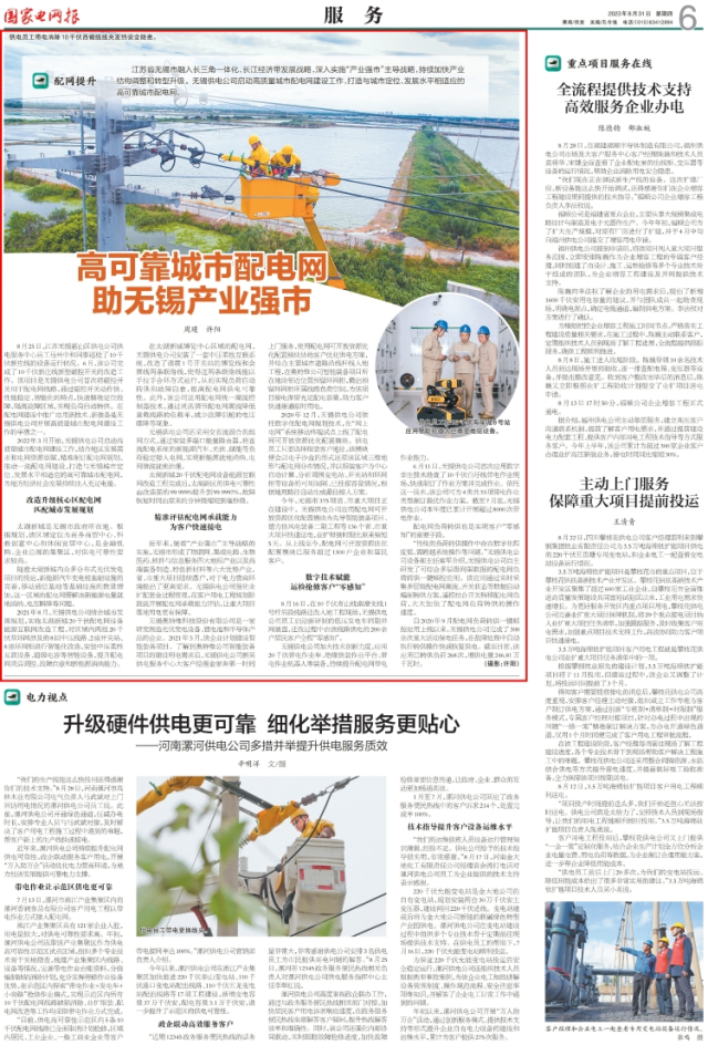 《国家电网报》:高可靠城市配电网 助无锡产业强市