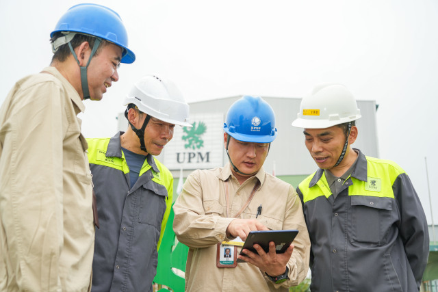 10月1日下午13时,在芬欧汇川(常熟)纸业有限公司生产车间里,纸浆打浆机、纸张机、切纸机和烘干机轰鸣声不断,3条文化用纸生产线满负荷运转。苏州常熟市供电公司大客户经理唐懿刚、用电检查员庾杨正在现场回访了解用户实际设备启用、生产负荷情况。