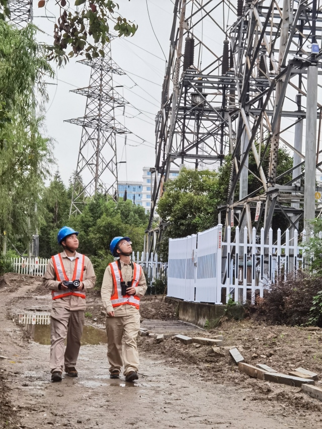 线路陪停期间,电网运行方式薄弱,还涉及保电工作,给当天周剑、陆韫韬的工作带来了极大压力。“吊车要严格按照方案中的位置停放,多向后倒一些。”当日10时许,周剑监督作业用车辆驶入指定工作区域,确保其作业安全。在导线吊装和调整过程中,他全程站在吊车旁,与工作负责人共同监护现场安全,为作业安全增加“双保险”。与此同时,陆韫韬手持红外测温仪,对站内运行设备进行测温和检查。