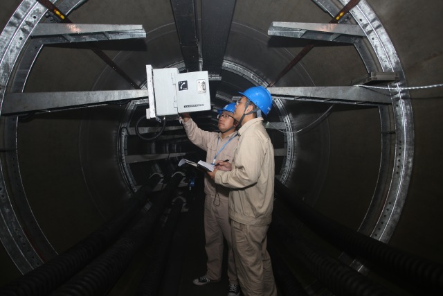 在地下17米的寿蓬线电缆隧道建设现场,承建管廊主体部分的苏州电建公司12名施工人员在3个作业点上严阵以待,制作着电缆中间接头,安装智能化设备。负责检查验收和日常运维的李佳洋照例来到现场,为节假日后即将开展的验收工作做准备。