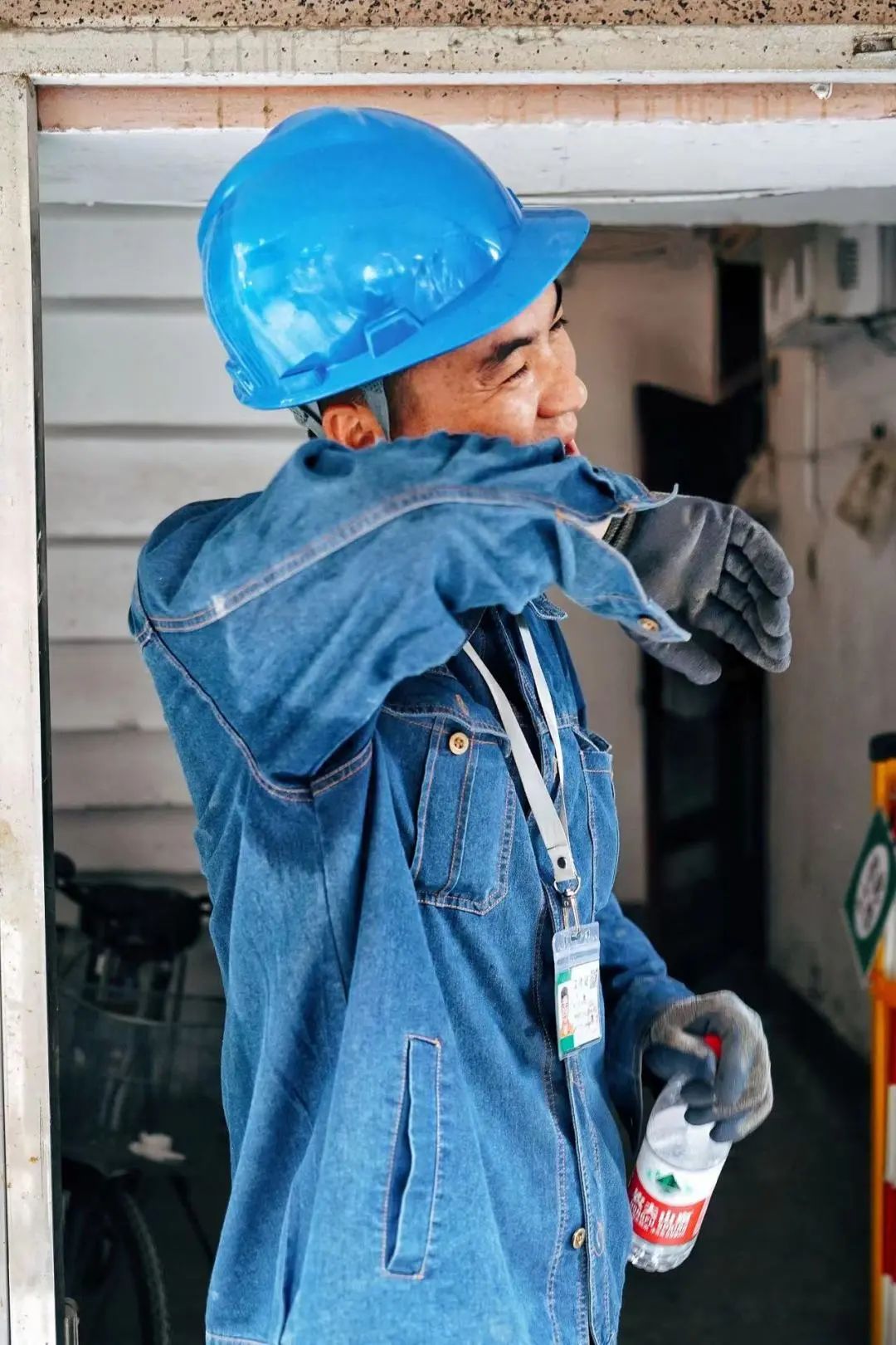 虽已立秋,“秋老虎”依然热力四射。在楼道里面作业虽然不是阳光直射,但是楼道里空间狭窄且不透风,短短半小时,郭俊峰和同事们上下楼梯,在用户和表箱之间跑十几个来回,一颗颗豆大的汗水从他们的安全帽里溜出来,顺着脸颊往下淌,工作服也被汗水浸透,紧紧贴在身上。郭俊峰告诉记者,这样经历“内蒸外晒”,衣服湿了干、干了又湿已成为他在夏天的工作常态。“为了居民清凉,再热再累也要扛。”