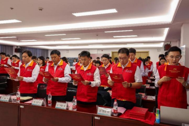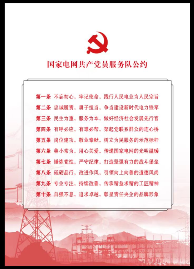 全体人员宣读了《国家电网共产党员服务队公约》。“不忘初心,牢记使命,忠诚履责,勇于担当...”,嘹亮的宣言句句铿锵,展现了“金泰阳”共产党员服务队奋发有为、热血向上的精神风貌。