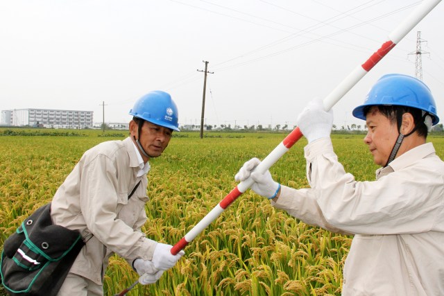 今年高邮市水稻种植面积为80余万亩,目前即将开镰,预计总产量53万吨。为保障农民秋粮入仓,该公司推出“组合拳”服务。自10月7日以来,组织13个供电所的200多名员工对涉及稻田的10千伏和400伏电力线路进行巡查,消除了26处影响供电安全的隐患,对70多处田间破损的电杆拉线反光管进行了补装,以防收割机撞及电力设施影响秋收供电。该公司及13个供电所开辟绿色服务通道,及时为前来申请烘干用电的客户办理业务,安排人员到现场勘查、施工和装表接电,自9月份以来,已为11家粮食烘干小作坊快速办理了新装和增容用电业务。
