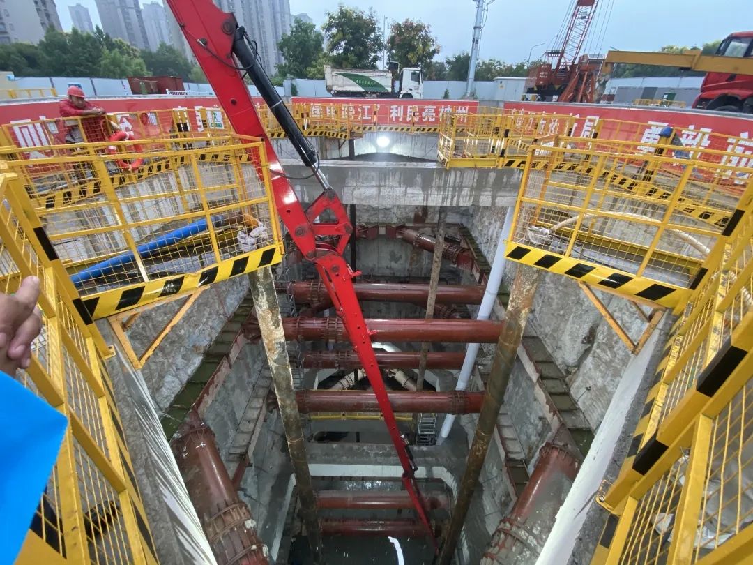 据介绍,J3井距离长江直线距离近,周边地质条件复杂,地下水系丰富,渗漏水风险大,且作业面狭小,开挖难度大。