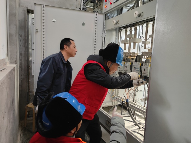 12时20分,郝华买来空气开关、电缆,两名抢修人员立即着手更换,压接电缆头,更换空气开关,一切抢修工作有条不紊进行。