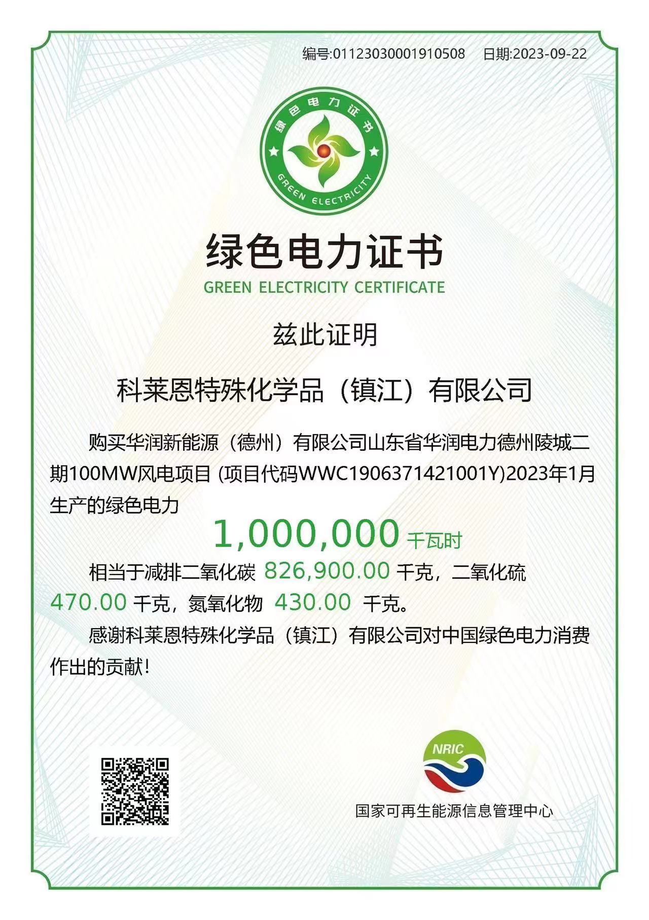 10月26日,碳达峰碳中和2023金山峰会上,巴斯夫造纸化学品(江苏)有限公司等4家企业被授予“镇江绿色电力100%企业”奖牌。在该公司协助下,这4家企业已累计购买绿证7万张。