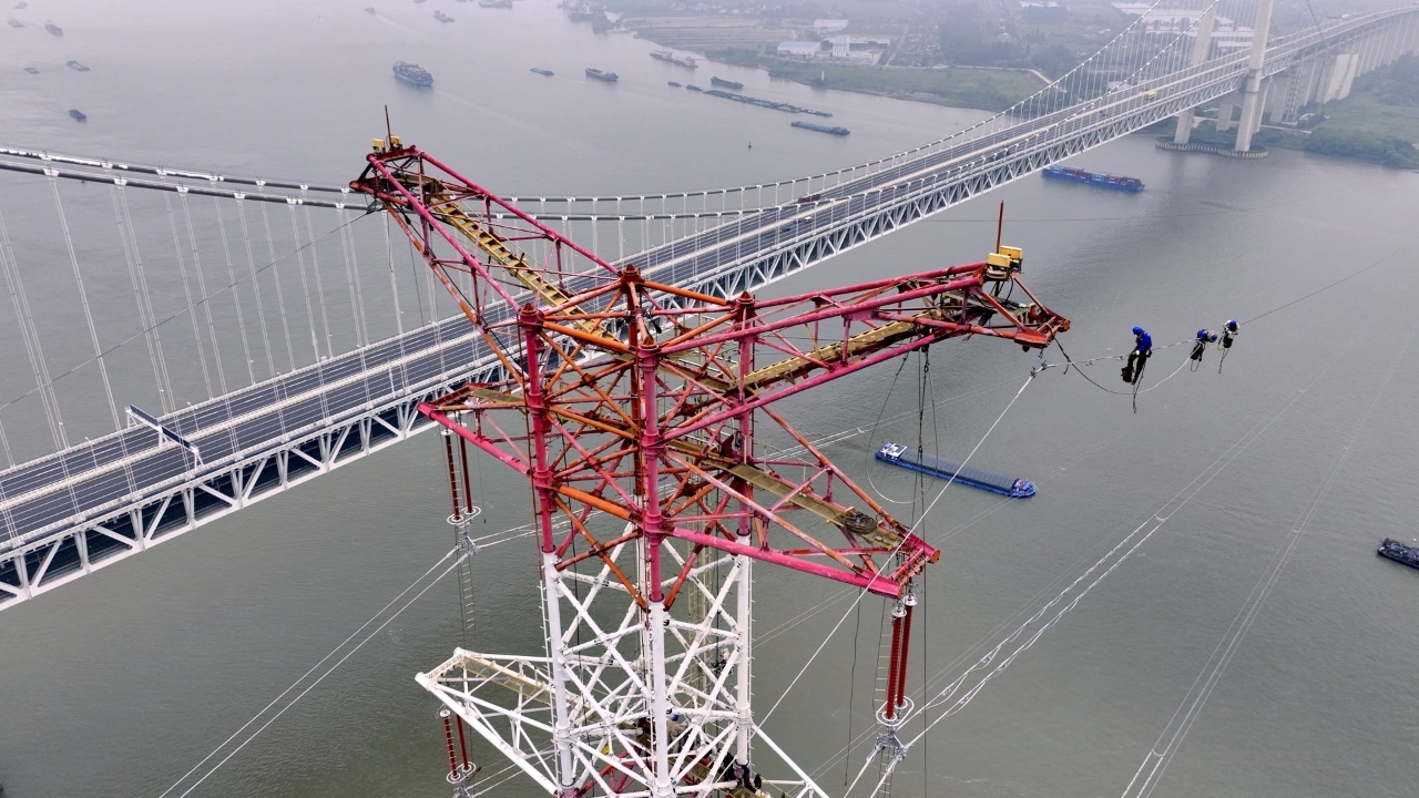 9月26日,±200千伏扬州—镇江直流输电工程五峰山长江大跨越完成了线路更换。
