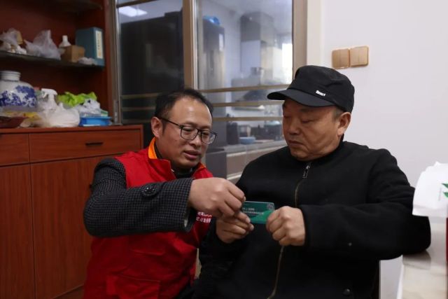 和往常不一样的是,这次除了慰问品之外,志愿者特意带了定制的盲文电费卡送往视障人士家中。颜大爷是位视障老人,过去每次查电卡户号时,总要请他人代劳。