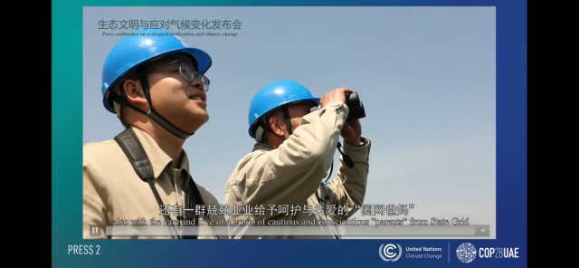 迪拜时间12月1日13:00—13:30,由中华环保联合会主办的生态文明与应对气候变化发布会在第28届联合国气候变化大会官方新闻直播发布间举行。作为大会的“老面孔”,国网扬州供电公司发布了“共享家园 共创美好”主题视频,讲述了扬州青年与电网相伴、与飞鸟相知的温馨故事,展示了扬州在保护东方白鹳这一珍稀物种上的实践。