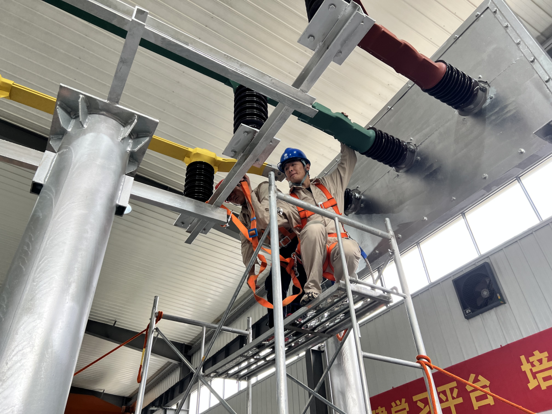 在进行室内穿墙套管检修培训时,他们互相鼓励。“不要怕,把安全带挂好,我们在下面扶着,你慢慢往上爬……”“下来的时候你先把脚伸出来,然后慢慢身子往下靠……,小青年们克服高处作业的心里恐惧,两人配合,成功完成了穿墙套管以及软连接部分的拆卸和安装。通过集中培训,标杆班组的青年员工已初步具备110千伏流变、压变和穿墙套管的拆装、调试能力。