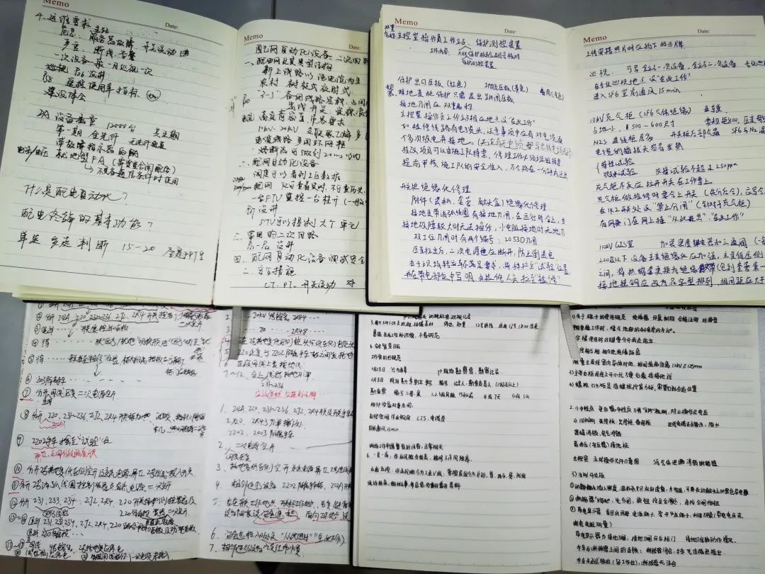 从设备小修预试投运前检查到新建变电站交接验收,从断路器故障排查和消缺到GIS维保,3个多月的时间里,他们每个人的工作笔记都记了满满一整本。