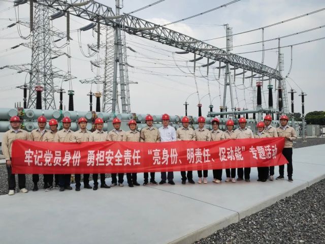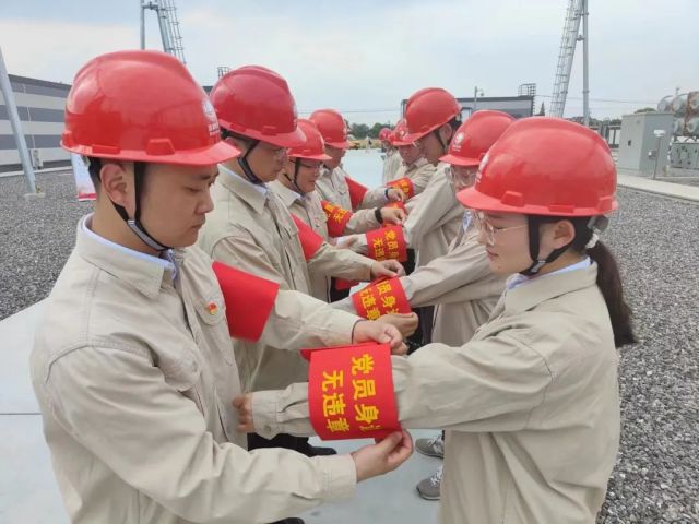 全体党员在220千伏白杨变现场举行“党员身边无违章”宣誓仪式