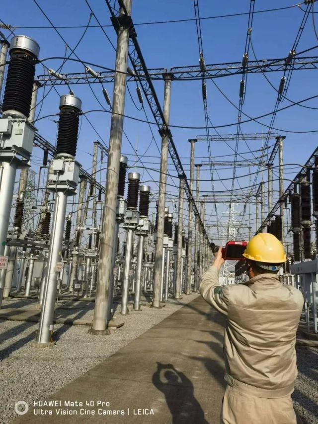 春节期间,运维人员在变电站巡视测温