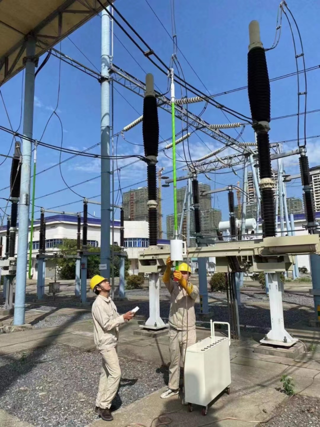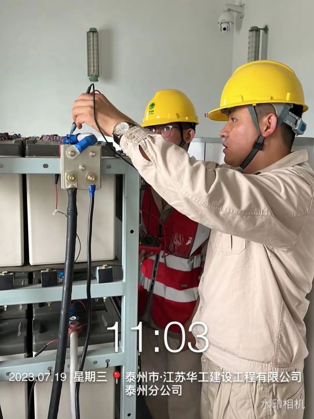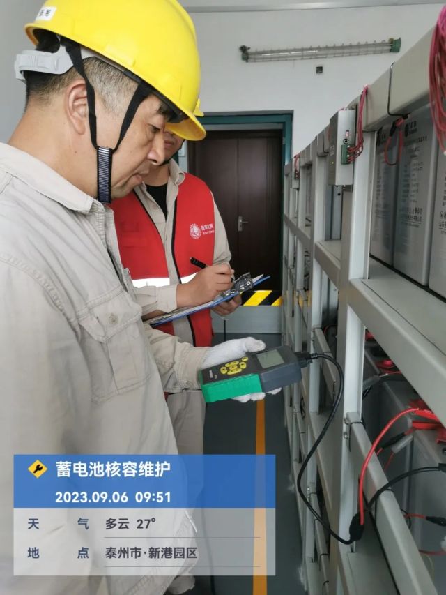 2023年迎峰度夏期间,变电运维中心开展自主实施蓄电池核容专项工作,运维人员正在进行蓄电池端电压测量