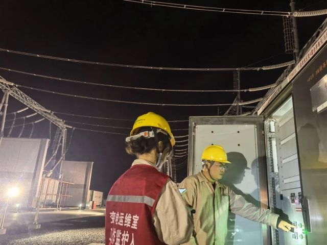 深夜,变电运维人员在220千伏团结变倒闸操作