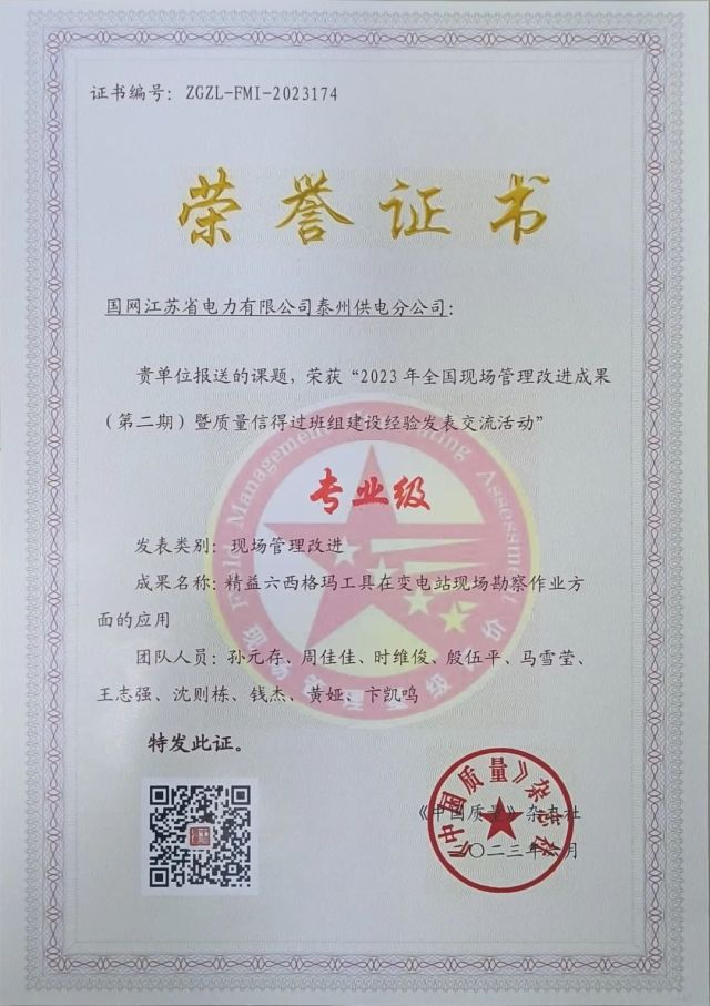 2023年7月,变电运维中心孙元存、马雪莹参加2023年全国现场管理改进成果发表交流活动,并获得全国专业级的优异成绩
