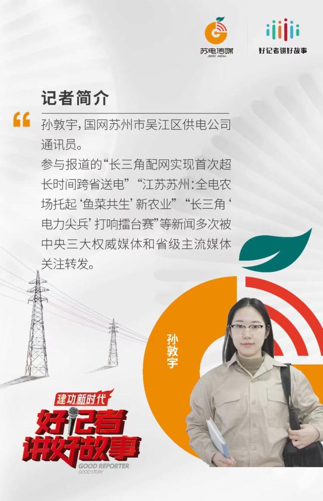 得知这一线索后,孙敦宇第一时间与专业部门联系,详细了解此次大规模转供电细节,并多次深入现场采访,用镜头记录转供场景,努力将这项体现“国家战略”的故事讲好。相关稿件在新华社、中国电力报、江苏电力报等媒体刊发。