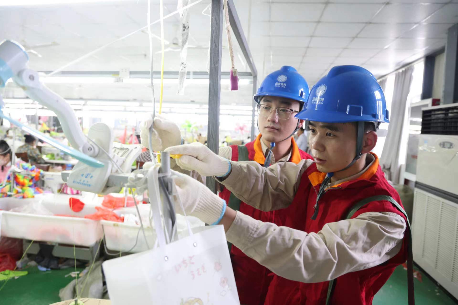8月8日,国网连云港市赣榆区供电公司工作人员,来到班庄镇前集村华威玩具厂,详细了解企业安全生产用电情况,并对企业供电线路、用电设备等进行安全隐患排查,现场处理用电问题,为企业夏季安全生产保驾护航。